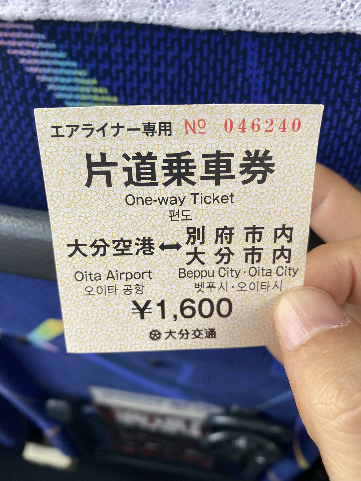 버스 인포메이션에 가서 '벳푸 기타하마' 라고 이야기하고 1600엔 지불과 함께 에어라이너 티켓을 받았다.