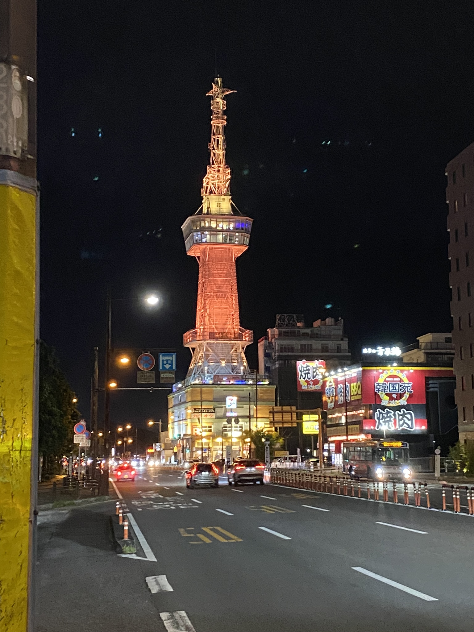 숙소에 들어가기 전에 횡단보도를 기다리며 벳푸타워 라이트업도 구경하고..