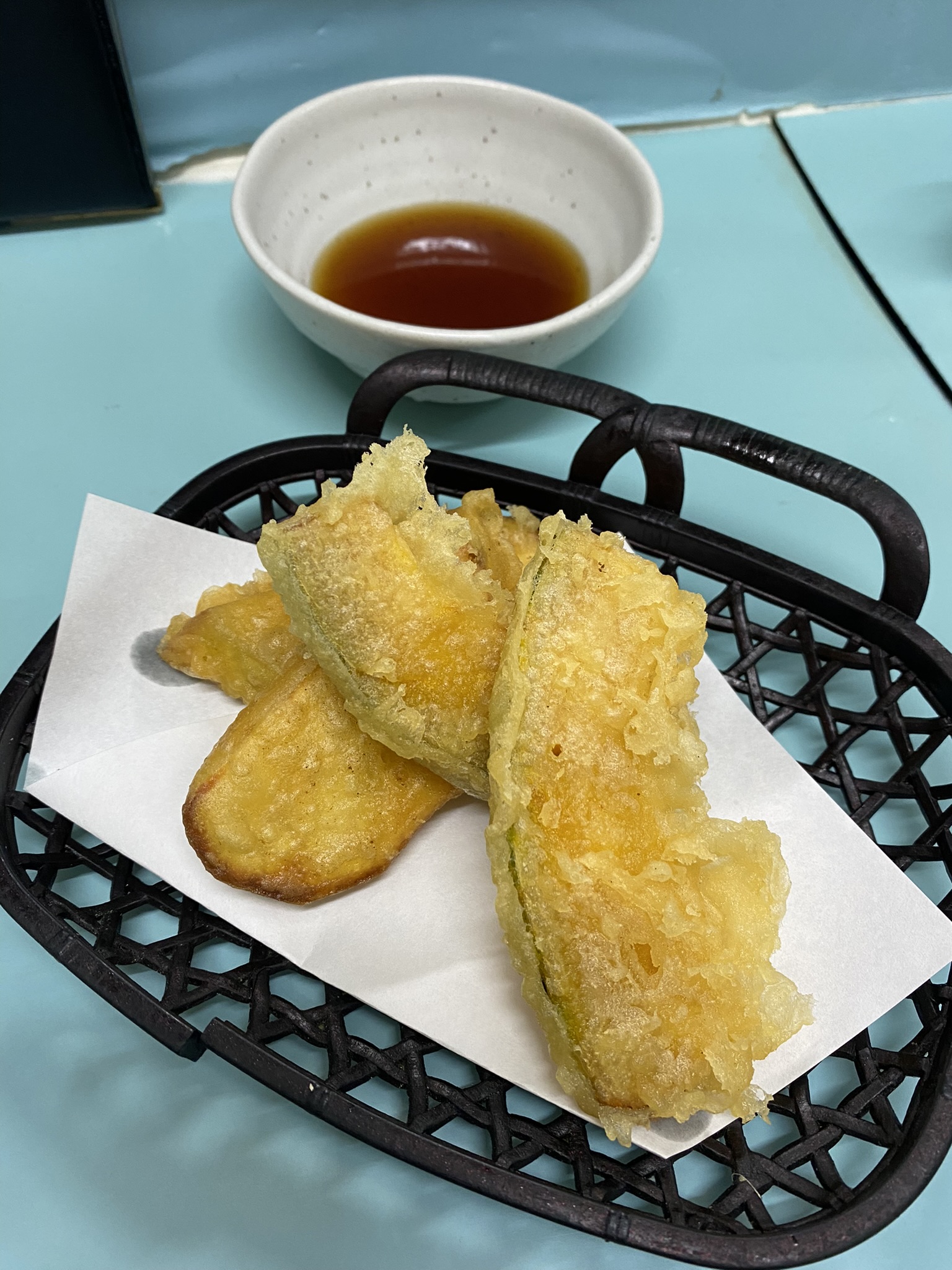 메뉴판을 보고 카레우동과, 고구마튀김,단호박튀김을 주문했다.